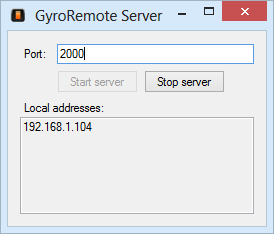 Click the icon, the server window will appear. Remember the ip address in the box (in the example it is 192.168.1.104. Yours will be different):